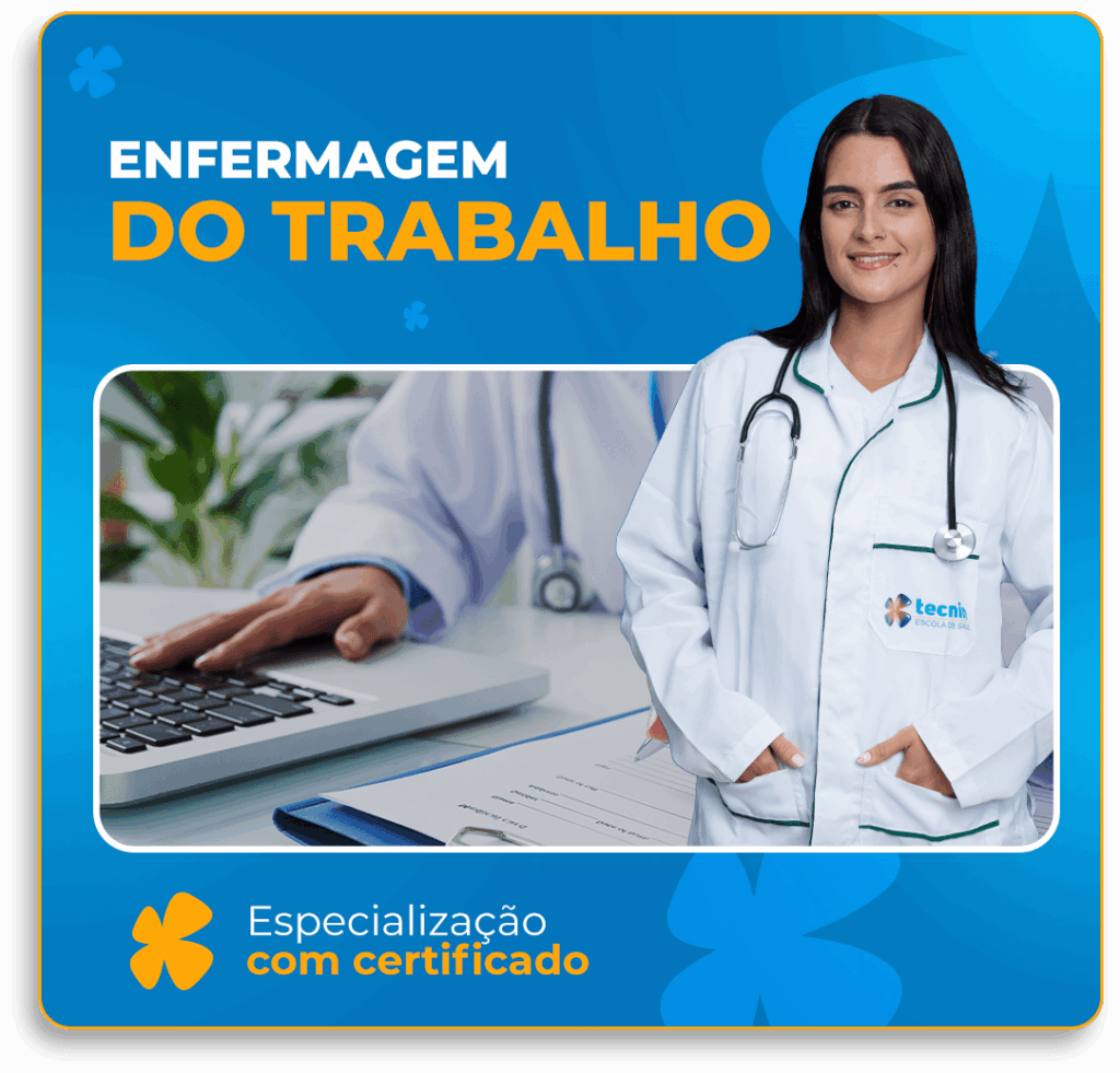 O Curso de Especialização em Enfermagem do Trabalho tem o objetivo de capacitar profissionais para atuar na área da saúde ocupacional. Com duração de oito meses, proporciona conhecimento sobre a atuação do profissional e as normas regulamentadoras, alinhando os conteúdos teóricos com o trabalho na prática.